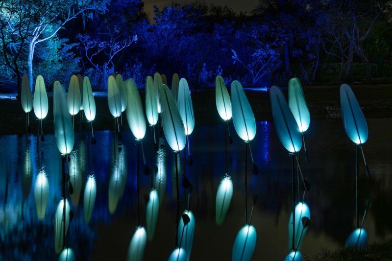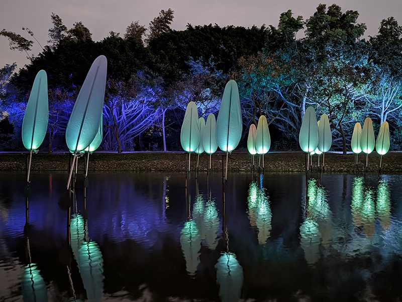 展覽以大稻埕碼頭為主展區,搭配金車文藝中心承德館的室內展場,創造出跨空間的藝術層次。觀眾可於白天漫步河岸,感受作品與風、光、水交織的自然對話,夜晚則可在光影映照下體驗城市新樣貌。這場展覽不僅是藝術家的實驗場,更是城市文化的延伸;當數位科技成為藝術語言,臺北的河岸與街景也化身為活生生的畫布。