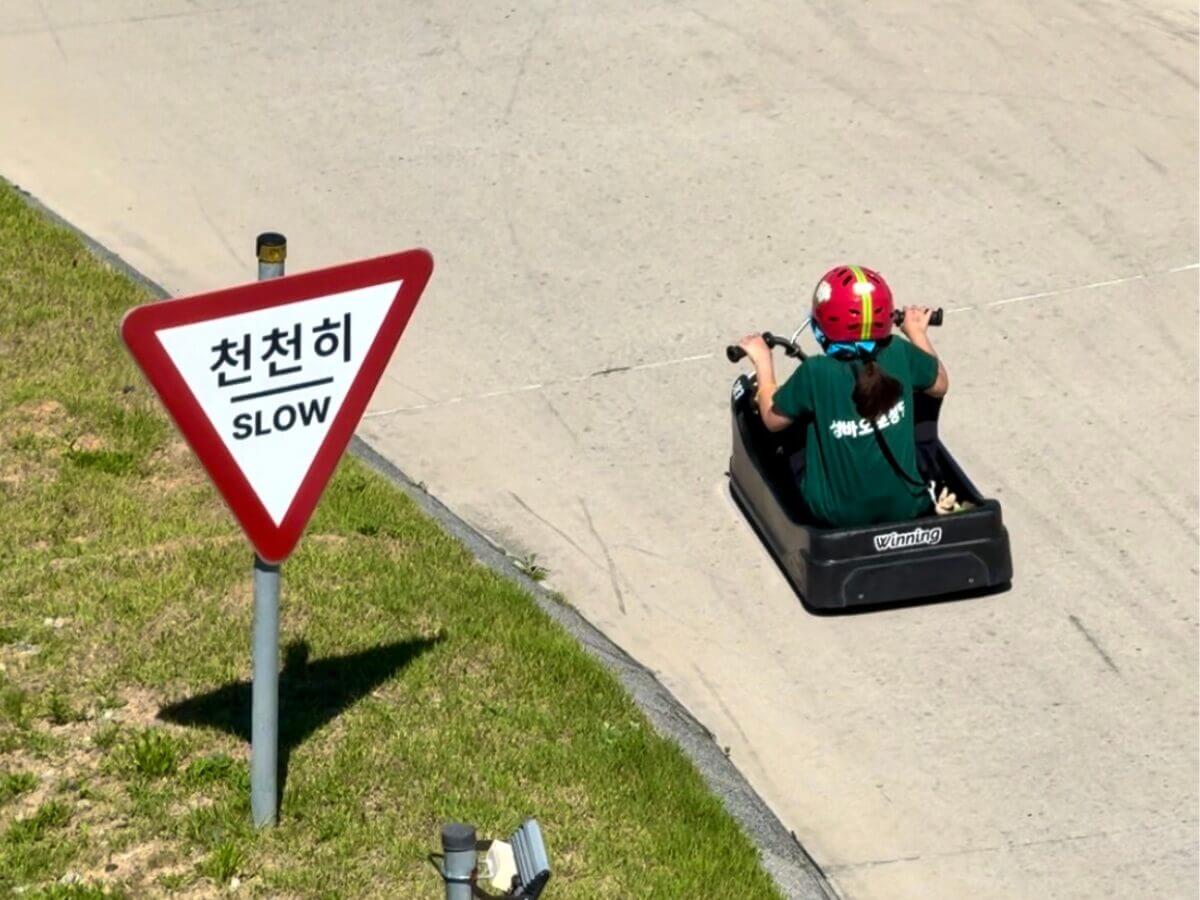 斜坡滑車是釜山熱門親子活動,大人小孩都能玩。軌道蜿蜒而下,速度快感十足。持釜山通行證可免費體驗一次。