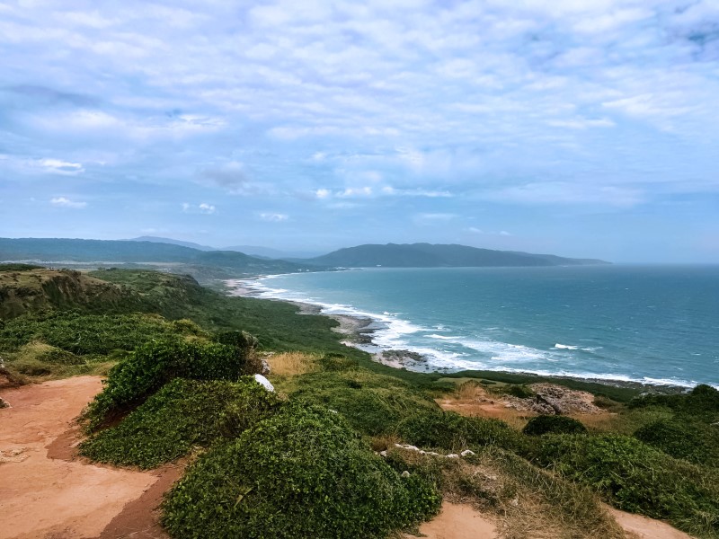 站在龍磐公園高處,整片太平洋盡收眼底。清晨時分,陽光從海平面緩緩升起,照亮一整片草原;午後,白雲在藍天漂浮,海風輕輕撫過臉龐,令人心曠神怡。許多遊客形容這裡是「墾丁的天空之境」,因為無論怎麼望,景色都讓人屏息。若幸運遇上好天氣,海與天的藍層疊出多重色階,美得像夢一樣。