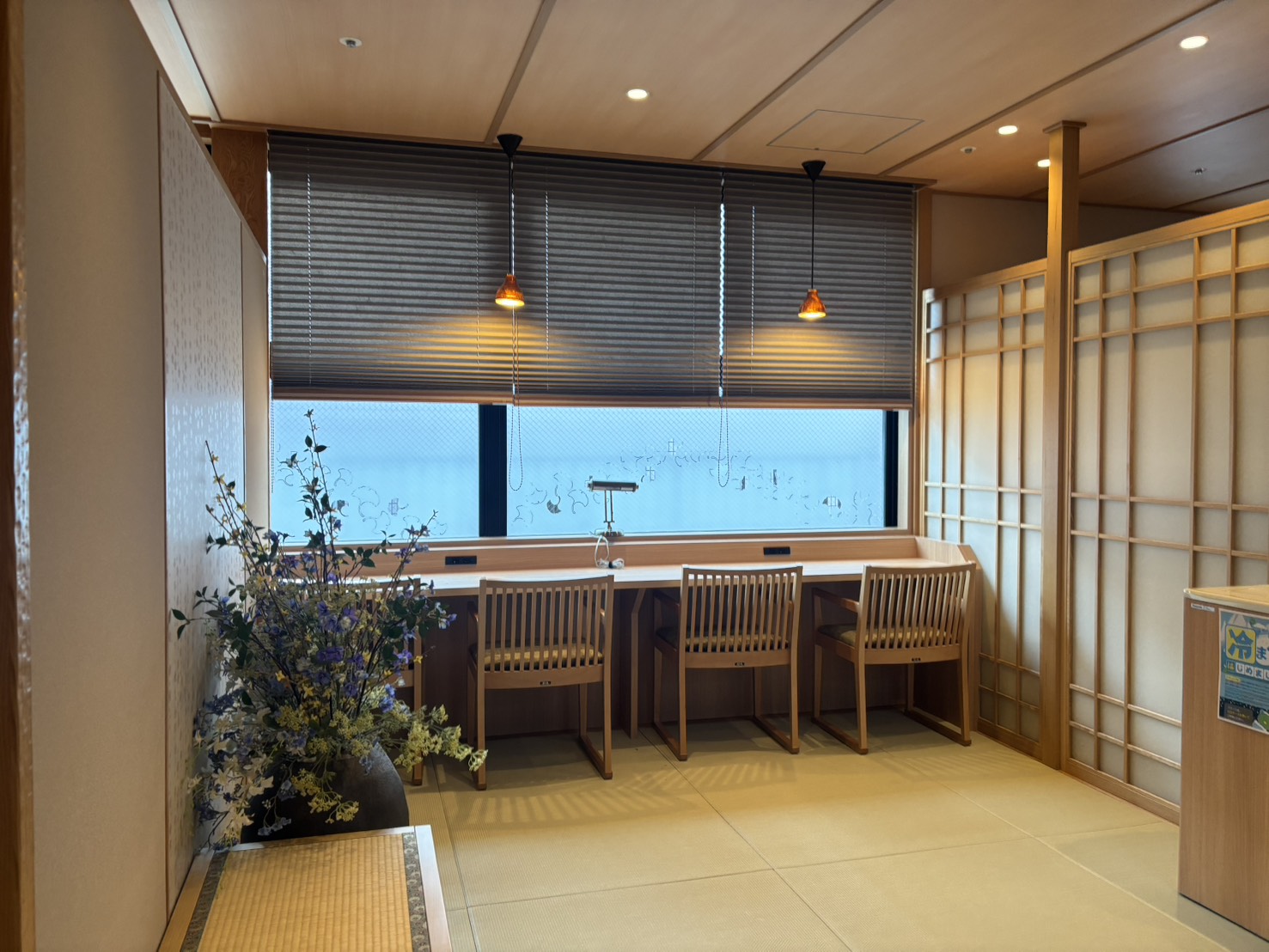 光腳踩在榻榻米上,溫柔的觸感立刻讓雙腳獲得解放。少了鞋子的束縛,你也可以穿著飯店提供的日式浴衣,在館內悠閒走動,徹底感受宛如住進傳統日式溫泉旅館的氛圍。