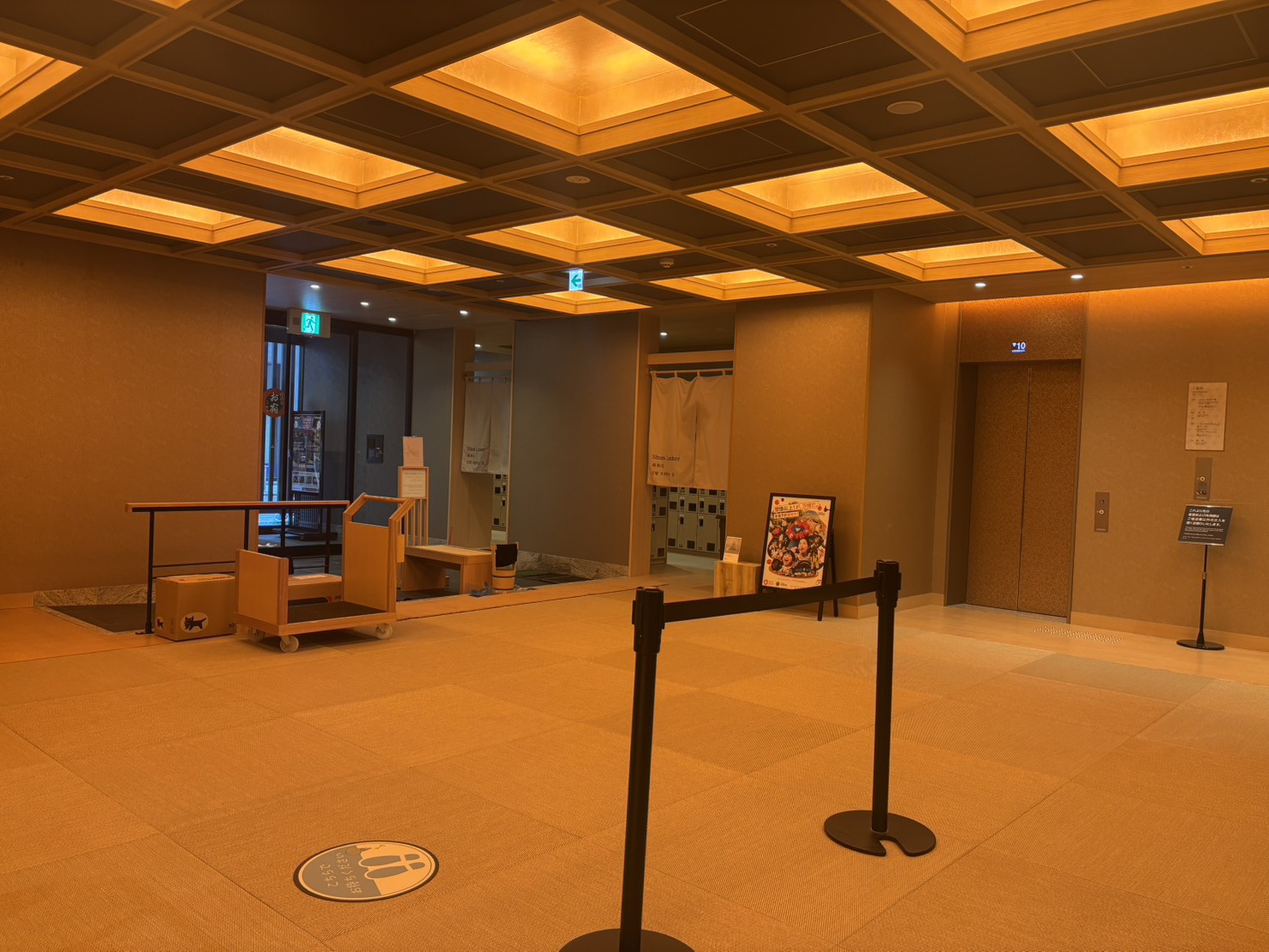 在Check-in前,就會被引導在指定區域脫鞋。馬上體感感受鋪設了溫暖舒適的榻榻米。