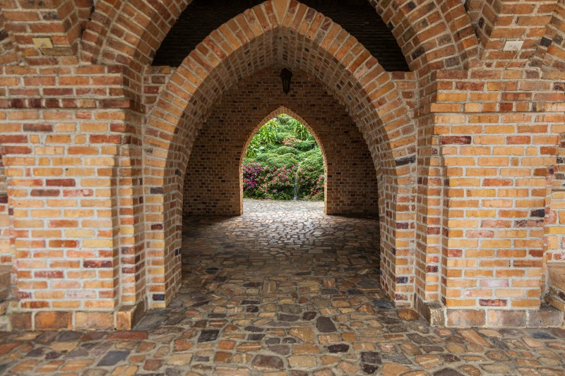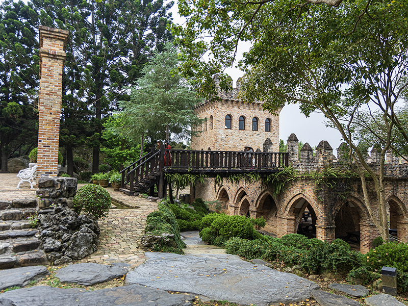 步入莊園,彷彿穿越時空,來到中古世紀的歐洲古堡。由石磚堆砌的建築、圓弧拱門與蜿蜒的步道,讓人恍若置身異國。園內的城堡、石橋與迴廊錯落於湖畔之間,構成如畫的風景。每一磚一瓦都保留了手作的溫度,帶有歲月的質感,也展現出創辦人對自然與美學的執著。