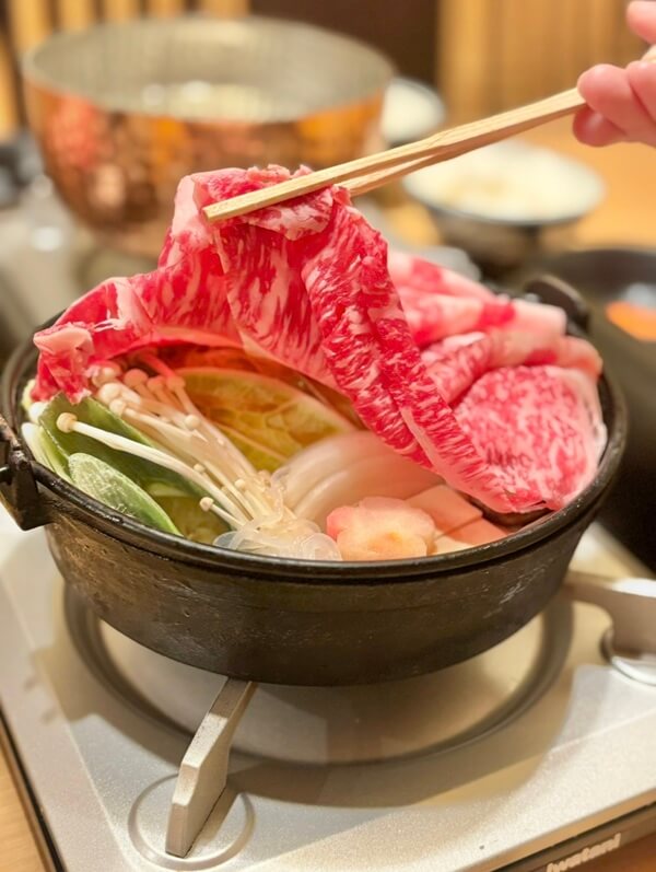 ・壽喜燒:以特製醬汁慢煮牛肉與蔬菜,佐以蛋液享用
